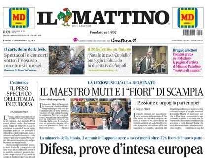 Nell’edizione di oggi, Il Mattino dedica spazio al Napoli in prima pagina: “Conte ci crede: non cambia niente. L’Atalanta torna a +2 ma l’allenatore non fa drammi“. In taglio il cartellone per le festività natalizie: “Spettacoli e concerti sotto il Vesuvio, ma chiusi i musei“. Di seguito la prima pagina integrale.
