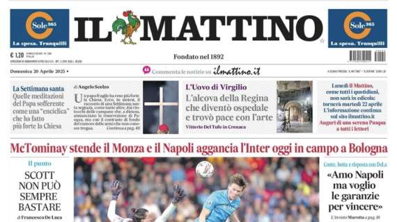 Riecco la vetta“, apre così in prima pagina Il Mattino nell’edizione odierna, celebrando il successo in trasferta degli azzurri di Conte che sono tornati almeno momentaneamente in testa alla classifica. Il sommario: “McTominay stende il Monza e il Napoli aggancia l’Inter, oggi in campo a Bologna“. Di seguito la prima pagina integrale.